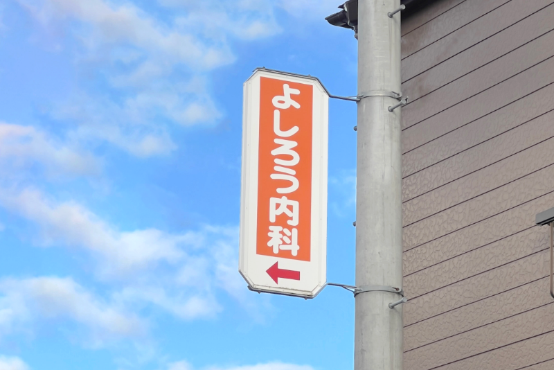 当院近くの電柱の上部に、当院までの道のりを標した看板を掲出しております。 近くにお越しになった際には目印としていただき、ご注意の上お越しください。