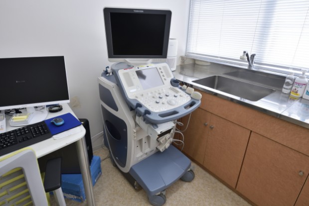 耳に聞こえない高周波の音(超音波)を体の外から当て、その反射を利用することにより、体内の臓器を画像化し観察する手軽で安全な検査です。